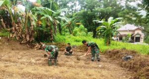 Babanisa Koramil 10/Lolowau Kodim 0213/Nias, Melaksanakan Pembersihan Lahan Demplot Koramil Lolowau