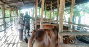 Dukung Program Pemerintah, Babinsa Kodim 0103/Aut Dampingi Warga Peternak Sapi
