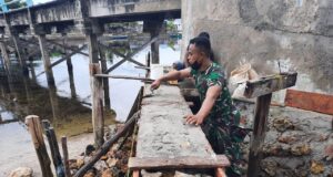 Satgas Yonif Raider Khusus 732/Banau, Perbaiki Tanggul Jembatan Bersama Masyarakat