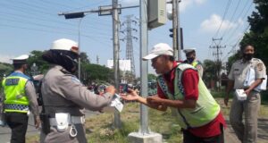 Sat Lantas Polres Ciko Memasang Stiker “AYO PAKAI MASKER” Untuk Edukasi...