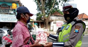 Optimis Gresik Zona Hijau, Polsek Wringinanom Bagikan Masker