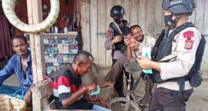 Patroli Kamandahan, Brimob Polda Aceh Kembali Bagikan Masker