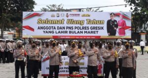 Pimpin Apel Pagi, Kapolres Gresik Rayakan Ulang Tahun Anggota yang Lahir...