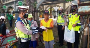 Satlantas Polres Gresik Terus Berbagi Membantu Meringankan Masyarakat yang Terdampak Pandemi...