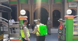 Cegah Penyebaran Covid-19, Polsek Duduk Sampeyan Semprot Disinfektan di SMP Islam