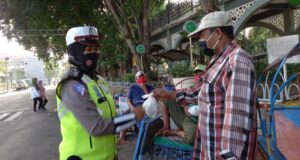 Satlantas Polres Gresik Bagikan Sembako Kepada Warga Terdampak Covid-19