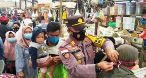 Polresta Cirebon Bagikan Masker dan Sosialisasi PPKM di Pasar Sumber