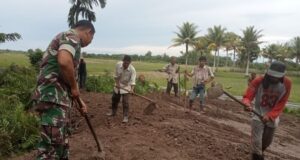 Bersatu Bersama Warga, Babinsa Kodim 0103/Aceh Utara Gotong Royong Timbun Jalan...