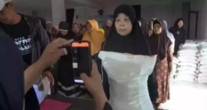 Demi Bantuan Beras, Ratusan Warga Purwakarta Rela Antri Berjam Jam