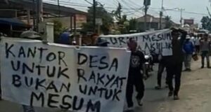 Tuntut Kades Mundur, Puluhan Warga Geruduk Kantor Desa Plered Purwakarta