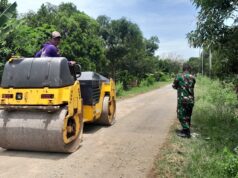 Anggota Satgas TMMD ke 126 Lanjutkan Pembangunan Jalan Rabat Beton