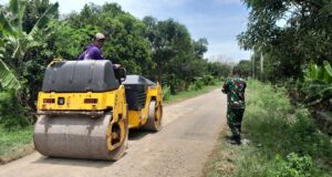 Satgas TNI Manunggal Membangun Desa Laksanakan Pengerjaan Hotmix Jalan di Desa...