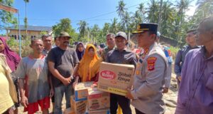 Kapolres Lhokseumawe Tempuh Jalan Longsor Sejauh 1 Km untuk Serahkan Bantuan...