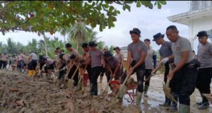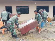 Bahu Membahu, Personel Koramil 18/Bkb Bersihkan Lumpur Pekat di Sekolah Daya...