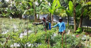 Bersama Warganya Babinsa Menyemprot Hama Tanaman Cabai