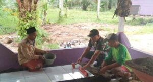 Cinta Meunasah Babinsa Kodim Aceh Utara Pasang Keramik di Dayah Mudi