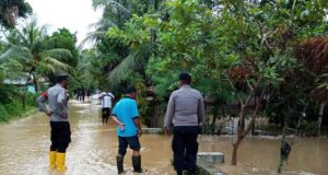 Kapolsek Nisam Bersama Personel Pantau Desa Terdampak Banjir