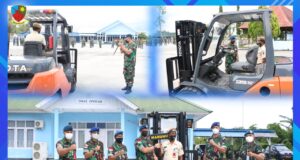 Danlanud Manuhua Serahkan Kendaraan Forklift Bantuan Dari Mabes TNI AU