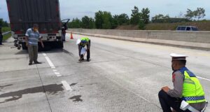 Polisi Olah TKP Kecelakaan di Tol Terpeka yang Akibatkan Satu Orang...