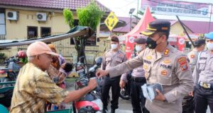 Kapolres Tanjungbalai Bagikan Masker Gratis Untuk Pengendara Becak Bermotor