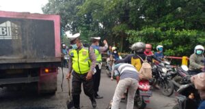 Antisipasi Kemacetan, Polantas Driyorejo Uruk Jalan Berlobang