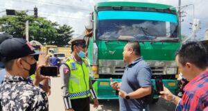 Puluhan Tronton Terpakir di Depan Portal Jalan Gajah Mada Sebanga