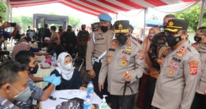 Kapolda Jabar Bagikan Sembako dalam Vaksinasi Massal di Polres Cirebon Kota