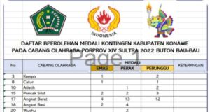 Perolehan Sementara Porprov ke XIV Kontingen Konawe 10 Emas, 20 Perak,...