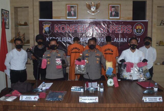 Kapolres Bintan AKBP Tidar Wulung Dahono, S.H., S.I.K., M.H mengatakan bahwa terhadap ketiga tersangka tersebut dilakukan penangkapan, penahanan, proses sidik dan pengembangan kasus untuk mengungkap jaringan Tindak Pidana Narkotika.