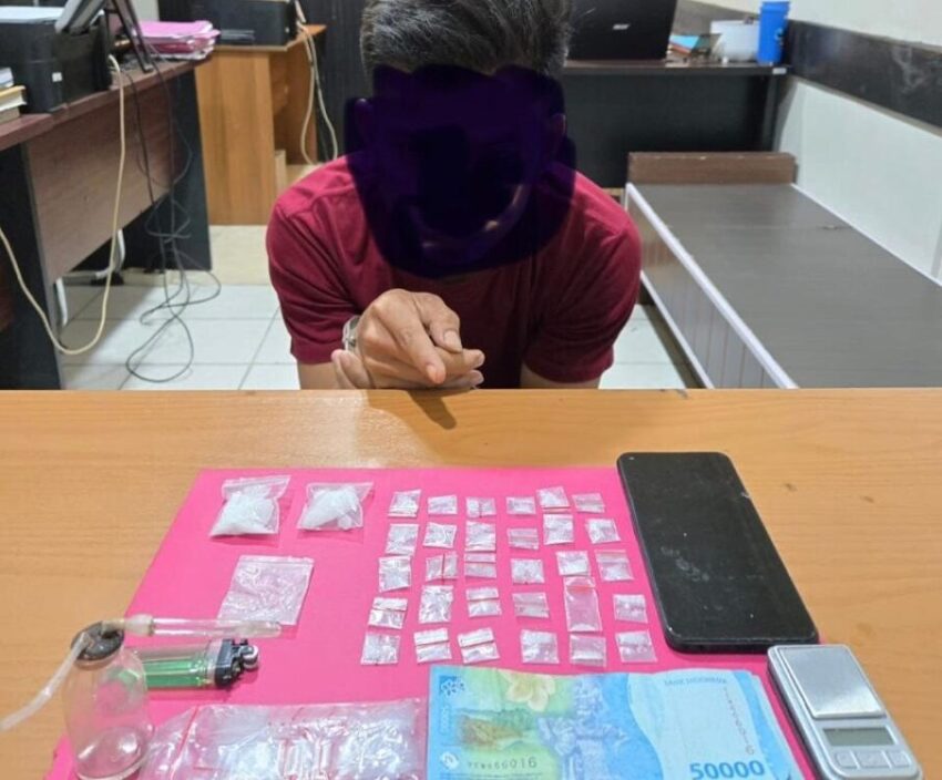 Kemudian team mengambil langkah hukum berupa penangkapan, selanjutnya dilakukan pengeledahan terhadap tersangka dan ditemukan barang bukti berupa 33 plastik kecil yang di duga narkotika jenis sabu seberat 15,28 gram.