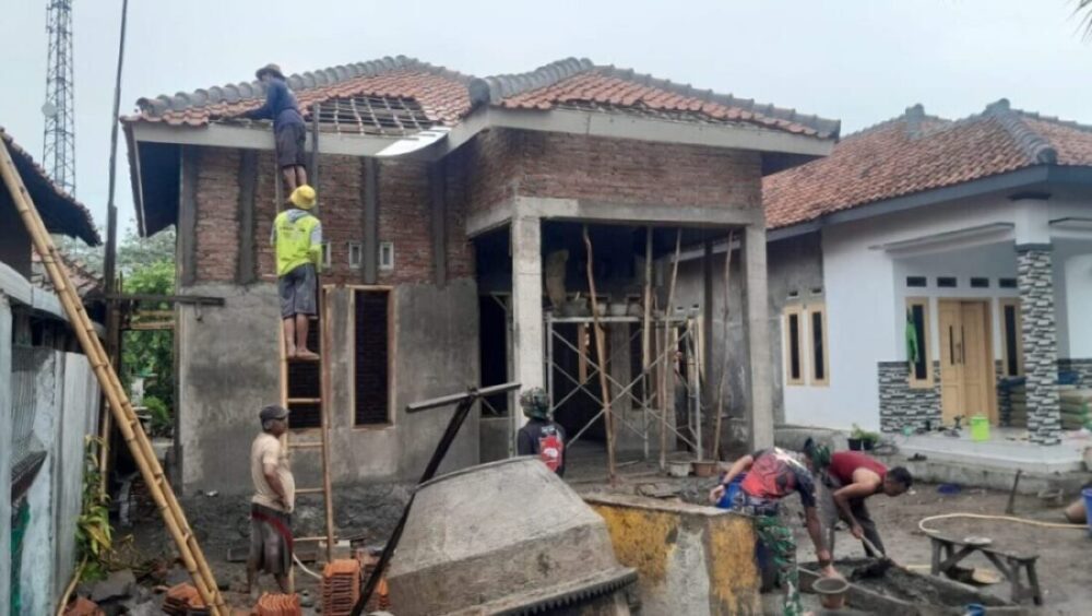 Dansatgas TMMD ke-126 Kodim 0616/Indramayu Letkol Arm Tulus Widodo, S.E., M.Han. melalui Dan SSK TMMD menyampaikan bahwa pekerjaan rehab rumah tersebut kini sudah memasuki tahap pemasangan kerangka atap rumah, setelah sebelumnya dilakukan proses perbaikan dinding dan lantai.
