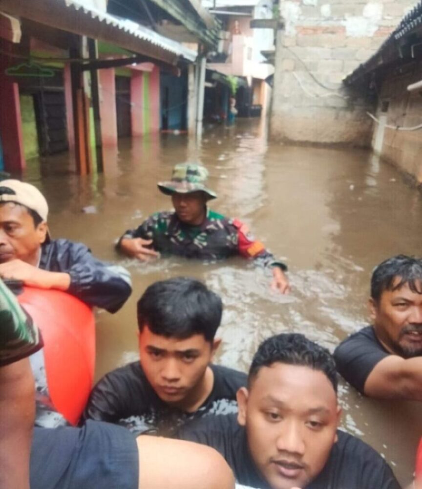 Di Kampung Blokang RT 02/06, Desa Karangsetia, Kecamatan Karangbahagia, banjir terjadi akibat luapan Kali Cikarang yang diduga dipicu oleh aktivitas proyek pembangunan jembatan perumahan. Ketinggian air dilaporkan mencapai dada orang dewasa.