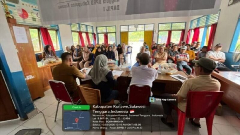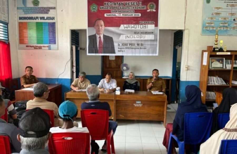 KONAWE, SUARA INDONESIA NEWS | legislator DPRD Kabupaten Konawe Ir. Joni Pisi, M.Si., melaksanakan reses tahap II tahun 2026, bertempat di Balai Desa Inolobu, Kec. Wawotobi, Kab. Konawe, Sulawesi Tenggara. (10/02-26)