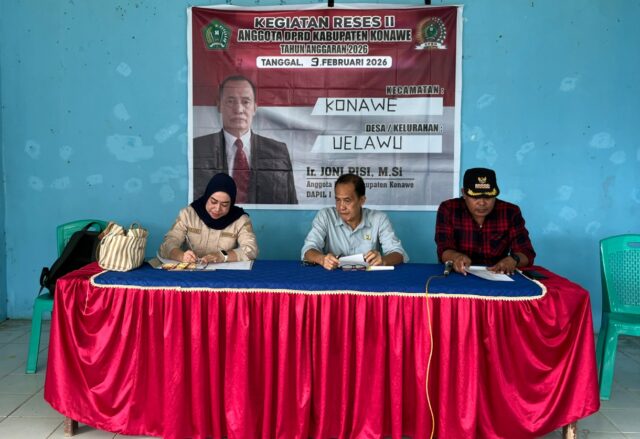 KONAWE, SUARA INDONESIA NEWS | Anggota DPRD Kabupaten Konawe Ir. Joni Pisi, M.Si., melaksanakan reses tahap II tahun 2026, bertempat di Balai Desa Uelawu Kec. Konawe, kab. Konawe, Sulawesi Tenggara. (9/02-26)