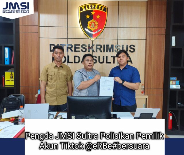 KENDARI, SUARA INDONESIA NEWS | Pengurus Daerah (Pengda) Jaringan Media Siber Indonesia (JMSI) Sulawesi Tenggara (Sultra) resmi mengadukan pemilik akun TikTok @eRBe#bersuara ke Ditreskrimsus Polda Sultra pada Selasa (27/1/2026).