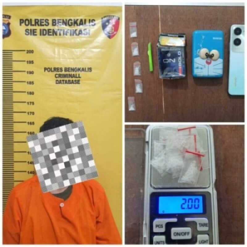 Berbekal informasi tersebut, tim opsnal Satresnarkoba Polres Bengkalis melakukan penyelidikan lanjutan dan berhasil mengamankan tersangka A.M. di lokasi kejadian.