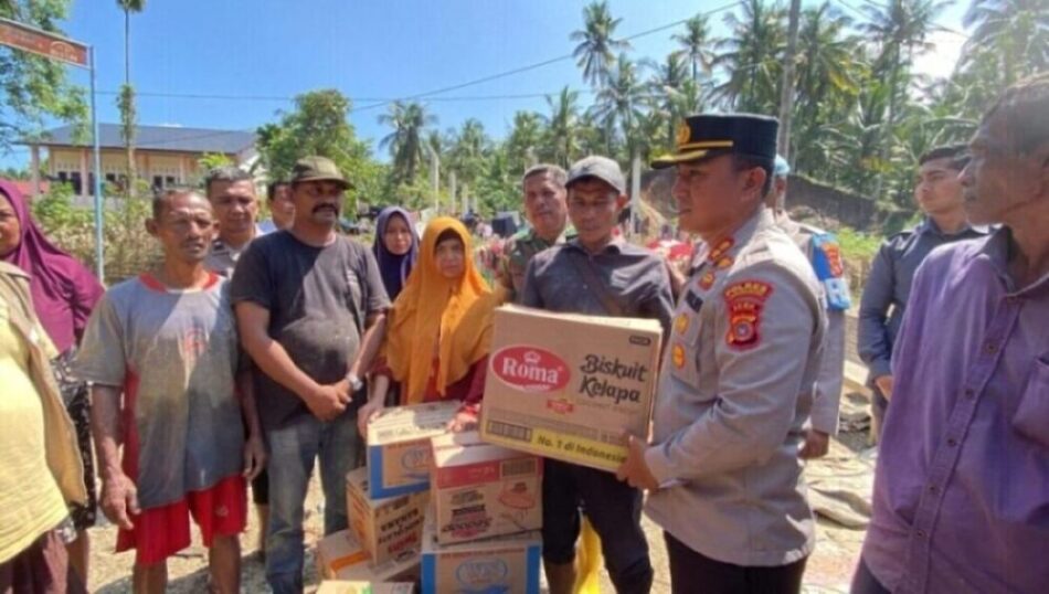 Bantuan yang disalurkan berupa beras, mie instan, air mineral, roti dan makanan siap saji, serta bantuan uang pribadi dari Kapolres. Seluruh bantuan diserahkan langsung kepada Geuchik dan perwakilan masyarakat yang hingga kini masih bertahan di lokasi pengungsian akibat banjir dan jalan yang terputus.