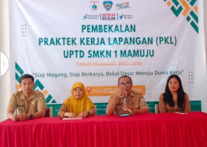 MAMUJU, SUARA INDONESIA NEWS | Selasa Tanggal 06 Januari 2026, Bertempat diaula UPTD SMKN 1 Mamuju dilaksanakan Pembekalan Praktik Kerja Lapangan (PKL) selama tanggal 6 sampai 8 januari 2026, sebagai langkah strategis sekolah dalam mempersiapkan peserta didik sebelum terjun langsung ke dunia kerja dan dunia industri.
