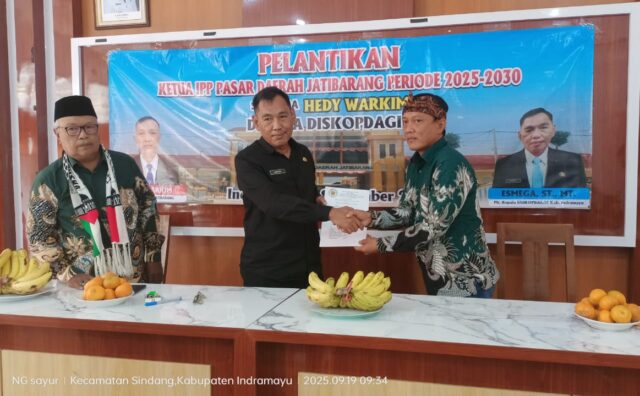 Hedy Warkim selaku Ketua Ikatan Pedagang Pasar (IPP) yang terpilih telah dikukuhkan dan dihadiri oleh Muspika Jatibarang, pada pelantikan bertempat di Aula Diskopdagin Kabupaten Indramayu. Jumat, (19/09/25).