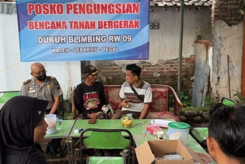 Kapolres Tegal AKBP Bayu Prasatyo, melalui jajaran Polsek Lebaksiu melakukan pemantauan perkembangan situasi tanah bergerak di RW 09 Desa Kajen, Kecamatan Lebaksiu, Kabupaten Tegal.