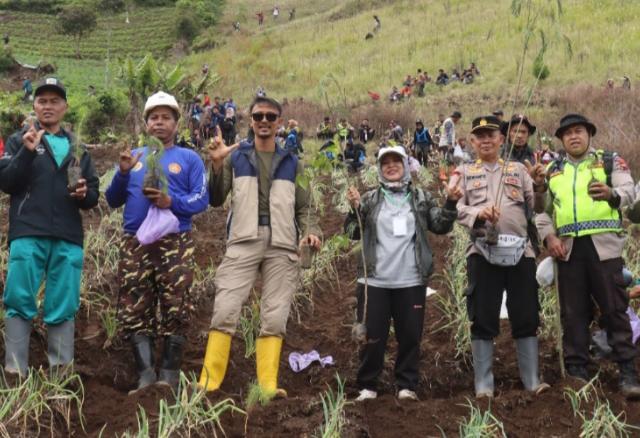 TEGAL, SUARA INDONESIA NEWS | Upaya menjaga kelestarian lingkungan dan mencegah potensi bencana alam Polres Tegal menggelar kegiatan kerja bakti penanaman 1.000 (seribu) pohon di kawasan hutan Perhutani Petak 57 C, KRPH Guci, Dukuh Sawangan, Desa Sigedong, Kecamatan Bumijawa, Kabupaten Tegal, Kamis 15 Januari 2026.