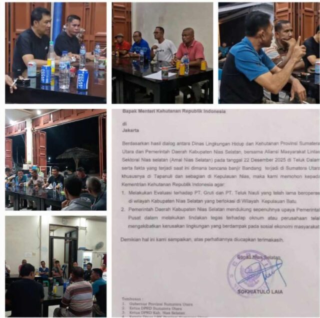Dalam pertemuan tersebut, perwakilan masyarakat menyampaikan aspirasi tegas kepada Pemerintah Provinsi Sumatera Utara melalui Kadis LHK, Bapak Hery Wahyudi Marpaung, S.STP., M.A.P. Masyarakat mendesak agar pemerintah segera mengeluarkan rekomendasi pencabutan izin permanen terhadap dua perusahaan pemegang Hak Pengusahaan Hutan (HPH) yang telah beroperasi selama puluhan tahun di wilayah tersebut, yakni PT Gruti dan PT Teluk Nauli.