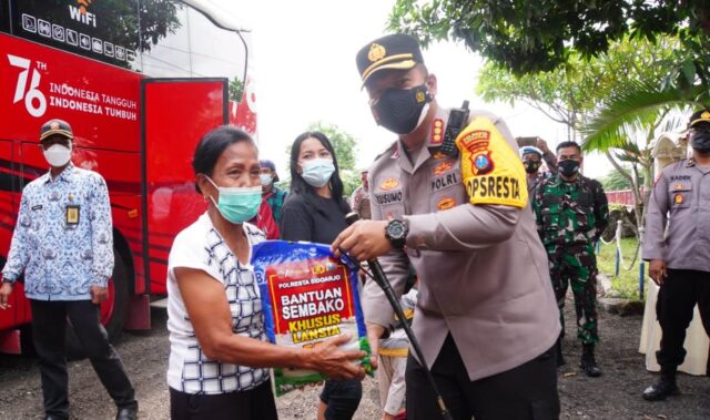 “Kami himbau masyarakat untuk selalu mematuhi tertib berlalu lintas dan disiplin protokol kesehatan. Dengan pendekatan humanis, kami edukasi untuk mematuhi keduanya. Serta kami juga menyediakan vaksinasi dan bakti sosial sembako bagi masyarakat,” ujar Kombes Pol. Kusumo Wahyu Bintoro.