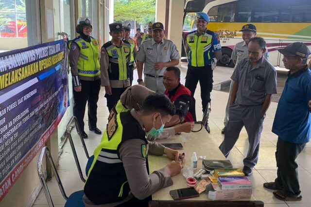 TEGAL, SUARA INDONESIA NEWS | Satlantas Polres Tegal Kota bersama Dinas Perhubungan dan Jasa Raharja menggelar ramp check kendaraan di Terminal Tegal guna memastikan kesiapan armada angkutan umum serta kondisi pengemudi.