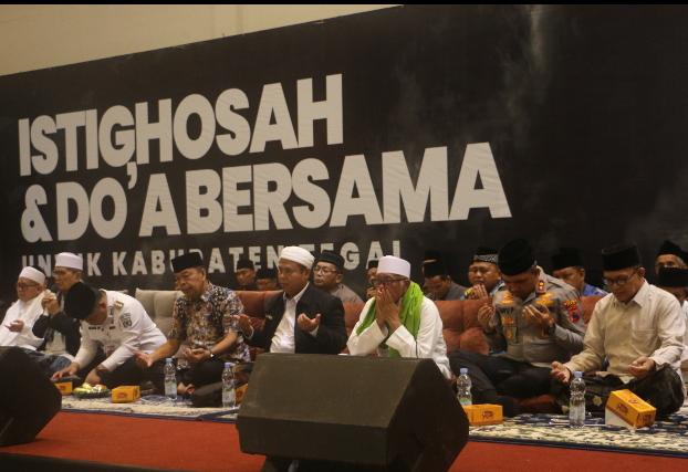 Dalam suasana penuh kekhusyukan, ratusan jamaah dari berbagai kalangan hadir untuk memanjatkan doa, memohon keselamatan, kekuatan, dan kemudahan bagi warga terdampak. Kapolres Tegal bersama unsur Forkopimda, tokoh agama, tokoh masyarakat, serta masyarakat umum tampak menyatu dalam lantunan doa, mencerminkan solidaritas dan kepedulian terhadap sesama.