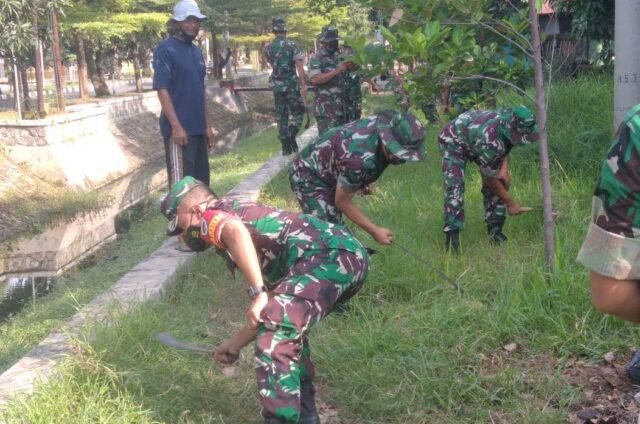 Suara Indonesia News – Indramayu. Anggota Kodim 0616/Indramayu bersama masyarakat melakukan bersih-bersih di sekitar Makodim, Kamis (16/12/2021). Selain dilakukan dalam rangka memperingati Hari Ulang Tahun Infanteri ke 73, kegiatan ini juga bertujuan untuk menjaga lingkungan agar terhindar dari penyakit & bencana.