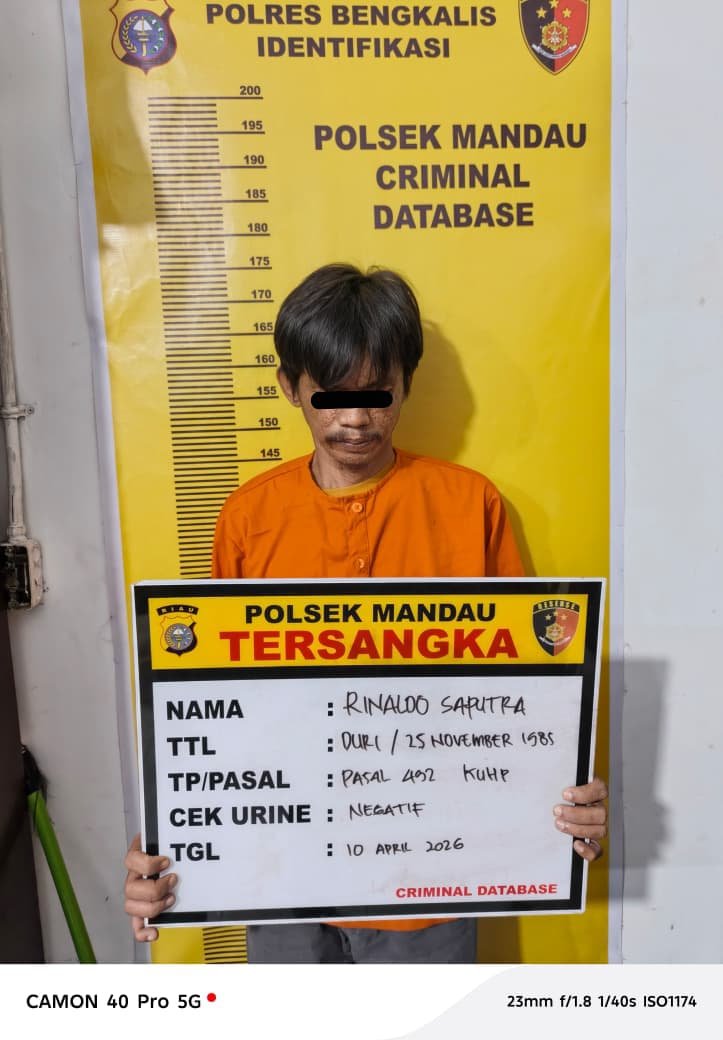 Hasilnya, pelaku berhasil diamankan pada Kamis, 9 April 2026 sekitar pukul 01.00 WIB di wilayah Kelurahan Pematang Pudu, Kecamatan Mandau.