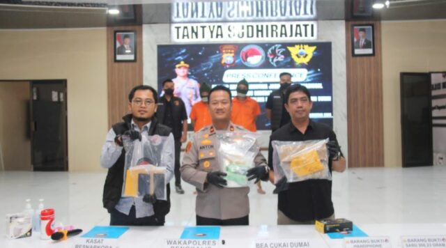 Hal ini diungkap oleh Kasat Resnarkoba Polres Bengkalis Iptu Doni Binsar, S.H., M.H., saat Press Conference tindak pidana Narkotika jenis sabu seberat 956,23 gram, di Aula Tantya Sudhirajati, Jalan Pertanian, Kecamatan Bengkalis. Jum’at (8/8/2025) pukul 10.00 WIB.