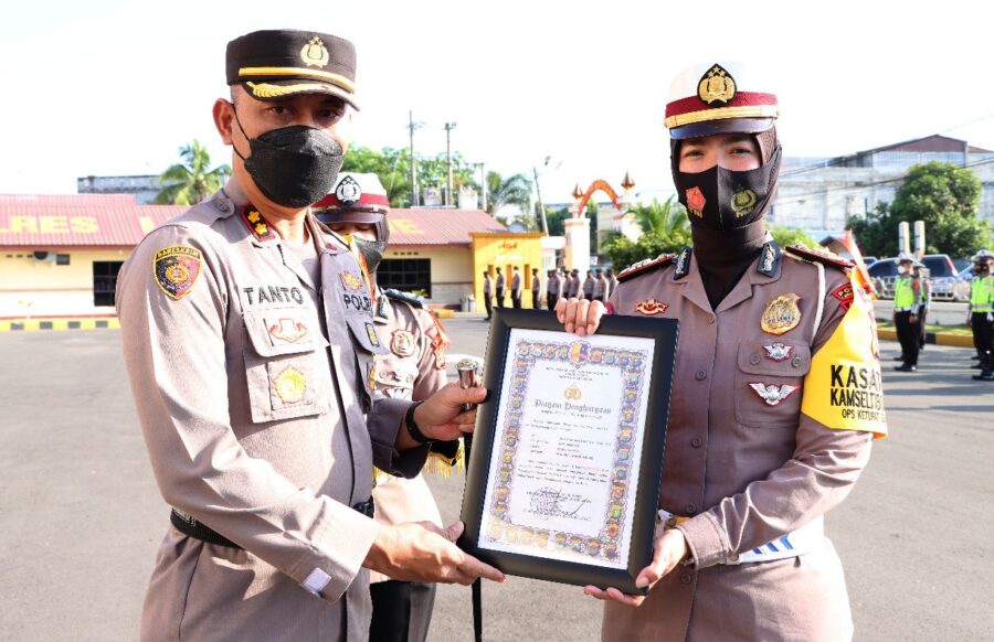 Suara Indonesia News – Lhokseumawe. Polres Lhokseumawe menggelar upacara pemberian penghargaan kepada 10 personil Satlantas dan 2 personil Jasa Raharja atas prestasi juara 1 pendataan kecelakaan lalu lintas online (IRMS) tahun 2001 yang berlangsung di lapangan Satya Haprabu Polres Lhokseumawe, senin (25/04/2022) pagi.