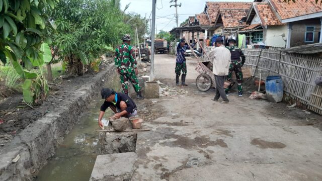 INDRAMAYU, SUARA INDONESIA NEWS | Anggota Satgas TNI Manunggal Membangun Desa (TMMD) ke-126 Kodim 0616/Indramayu bersama masyarakat setempat terus melanjutkan pembangunan Tembok Penahan Tanah (TPT) di Blok Sigedang RT 001/RW 001, Desa Longok, Kecamatan Sliyeg, Kabupaten Indramayu, Sabtu (25/10/2025).
